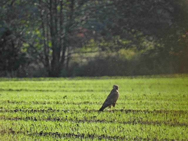 A chwilę później, jeszcze jedna ciekawa obserwacja - dwa piękne myszołowy na polu. Mąż wykonał świetną dokumentację z okna samochodu: